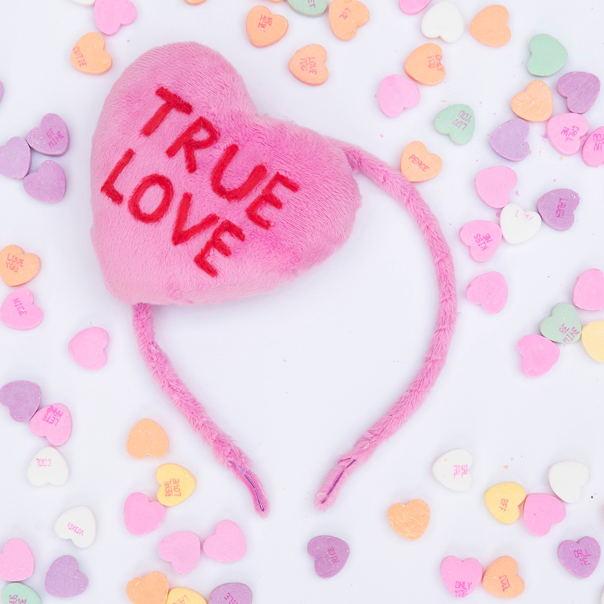 Just in time for Valentine's Day! Conversation heart fascinators are soft and squishy and crafted with plush fabric. It is attached to a matching fuzzy headband and can be fully repositioned.